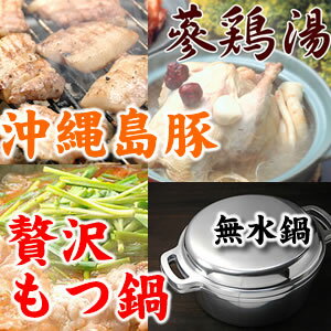 商品内容 無水鍋20cm サムゲタン1.4kg 贅沢5種類もつ鍋(うどん付き) 沖縄島豚ワインサムギョップサル500g ※原材料は各商品ページにてご確認願います。 【配送方法】 冷凍商品、冷蔵商品とも同梱が可能です。 【賞味期間】 各ページをご参考にお願いします。 【発送可能日】 定番でのお取り扱いですので、随時出荷が可能です。感謝の気持ちを込めまして、 総額 17,960円を ↓  ↓  ↓  ↓ 33%OFF★12,000円 送料無料(無水鍋付き) 1鍋8役のお水がいらない無水鍋20センチに、サムゲタン1.4kg&贅沢5種類もつ鍋(うどん付き)&沖縄島豚ワインサムギョップサル500gの豪華
